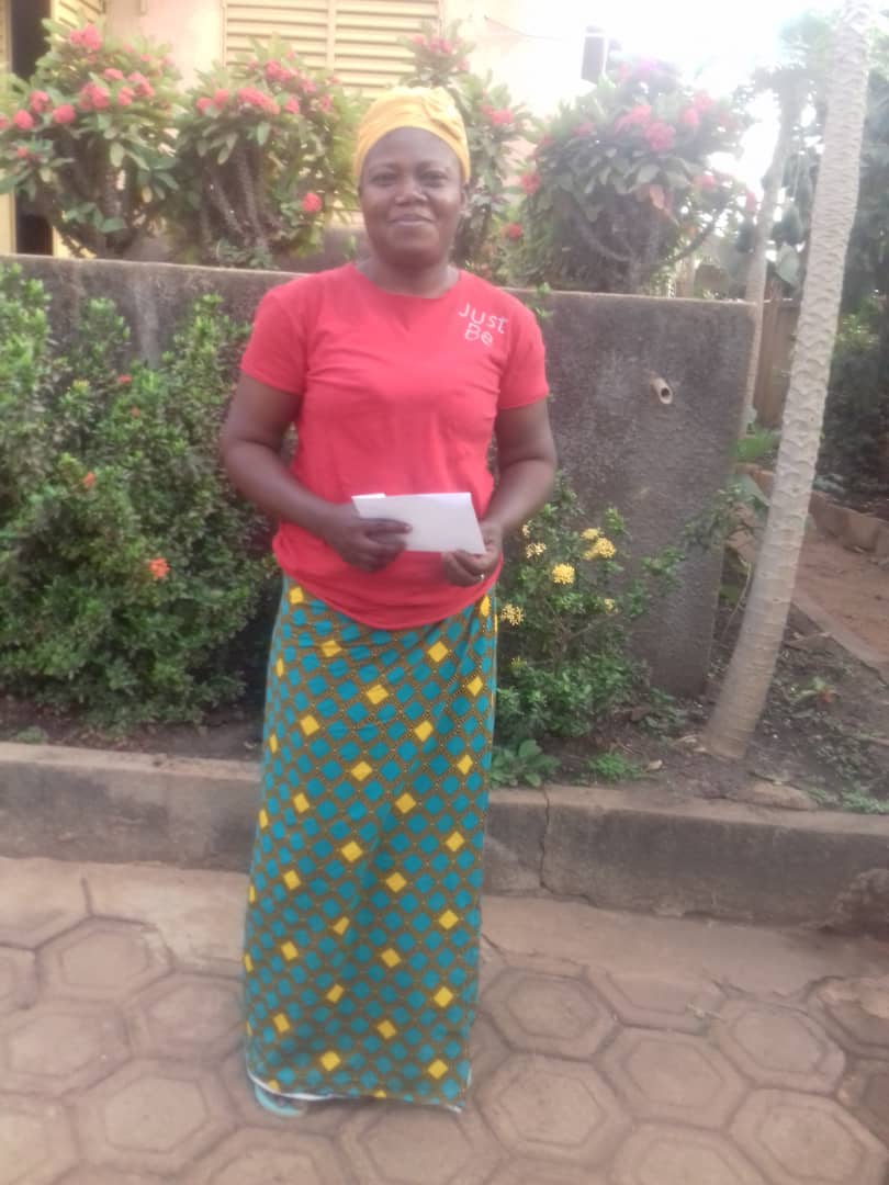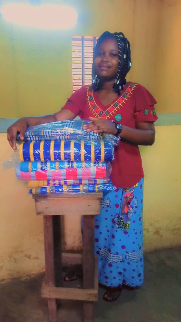 Brigitte, received a donation to set up a stall to sell washing powder and other personal hygiene products