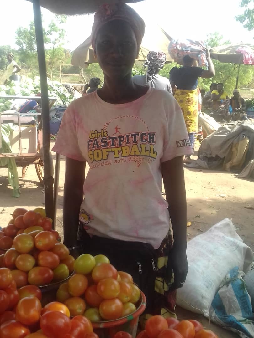 Mama, a beneficiary of funding for her tomatoes stall at the local market