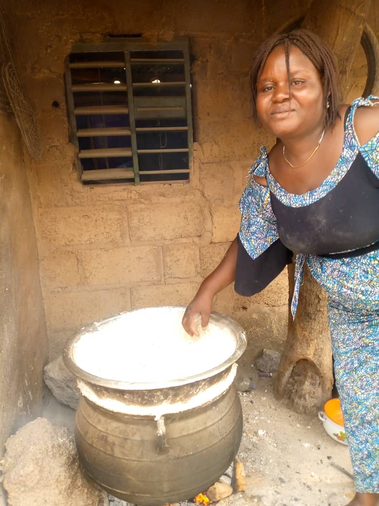 Justine, received funding to prepare & sell attiéké (fermented cassava, a nutritious traditional dish)