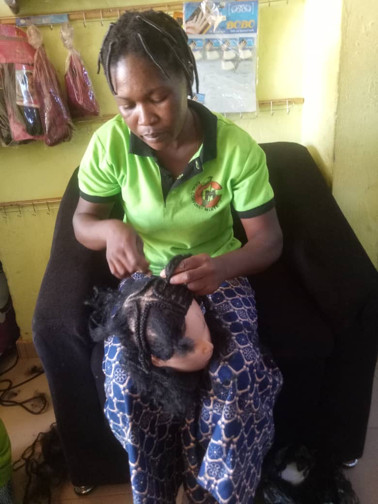 Awa, mother of 2 children, abandonned by her husband, has received funding to train as a hairdresser