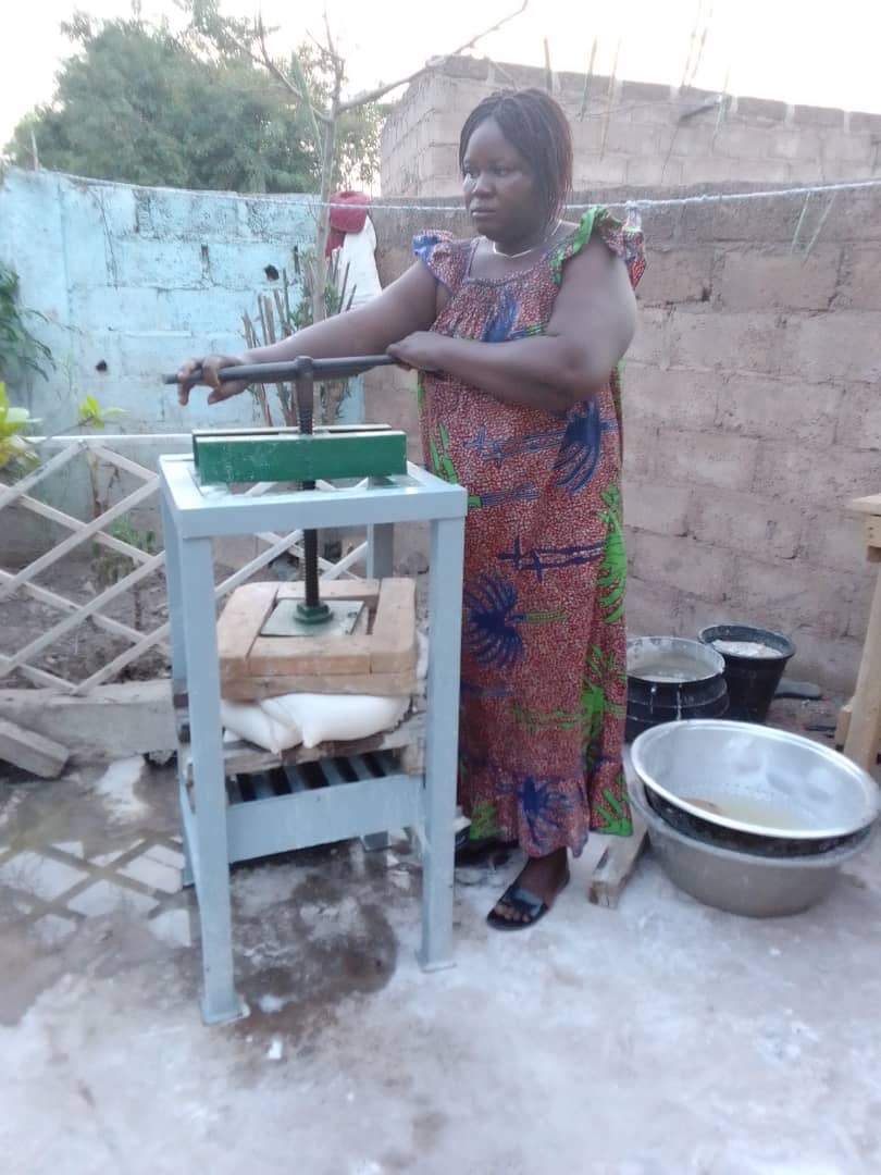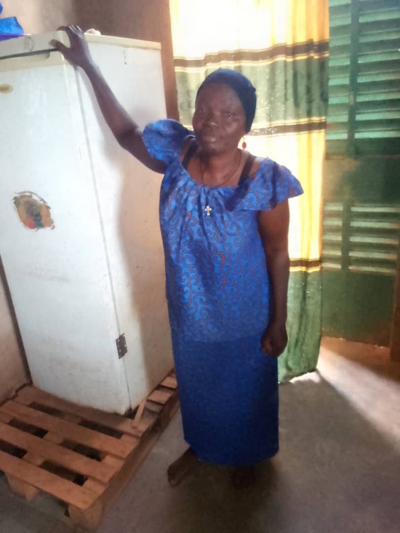 Adèle received a donation to repair the fridge where she stores food to be sold on the market