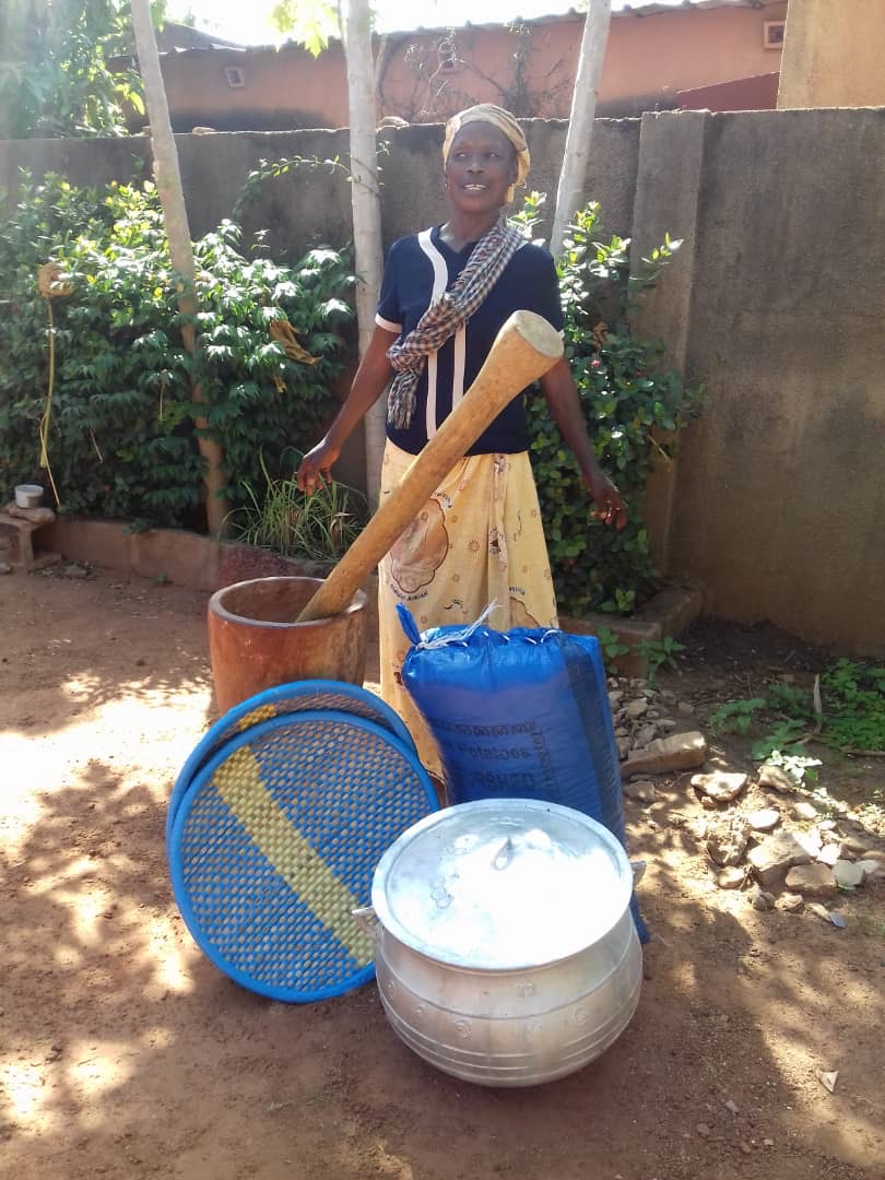 Célestine's husband left her and their 5 children. She has received funding to prepare Soumbala, the local mustard